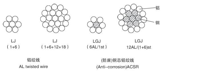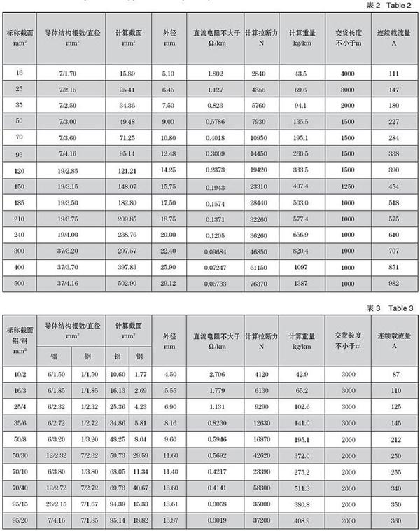 五、規(guī)格 鋁絞線規(guī)格如表2,(防腐)鋼芯鋁絞線規(guī)格如表3